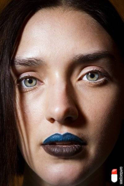 Чтобы яркий макияж смотрелся органично, необходимо наносить тени круглой мягкой кистью, а смягчать контур растушевочной плоской. Обратите внимание, что при нависающих веках растушевка делается достаточно широкая, примерно, на 70% неподвижной части; Выведение мнимой складки