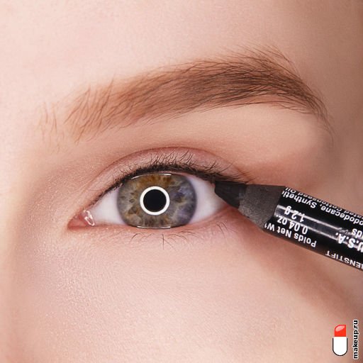 С помощью черного или темно-коричневого карандаша заполните межресничное пространство на верхнем веке.