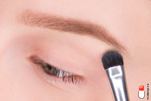 Карандашная черта растушевывается плотной скошенной кистью к брови