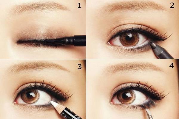 Это новый тренд. Большие круглые глаза в японском макияже нужно сузить, придав миндалевидную форму. Для выполнения техники следуйте инструкции: