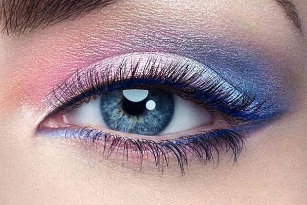 Внешний уголок нужно провести от среднего, самого высокого участка века до невидимой линии, соединяющей бровь и кончик. Голубым глазам идеально подойдут тёмно-фиолетовые тени для окрашивания внешнего уголка. Макияж для больших голубых приподнимет опущенный уголок, замаскировав их форму.
