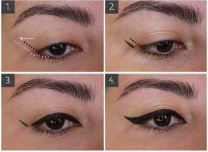 - Расширяющаяся к внешнему уголку линия подводки позволит сделать глаз менее узким;