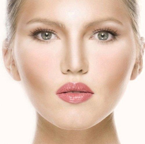 Для моделирования овала лица пригодятся две тональные основы: одна идентичная цвету кожи, другая на тон темнее натурального оттенка. Более тёмный тон распределяем на лбу возле корней волос, на скулы и подбородок. После чего на всё лицо ровным слоем наносим светлый тональный крем. Таким образом, лицо визуально будет смотреться шире, чем есть на самом деле.