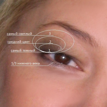 Карандаш или тени для век должны быть для блондинок на 1 тон темнее волос, для шатенок и брюнеток — на 1 тон светлее волос;