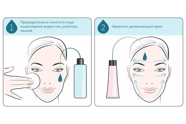Предварительно очистите лицо при помощи мицеллярной воды и пенки для умывания, затем нанесите увлажняющий крем. Если плотные текстуры — не ваша история, применяйте крем-гель или флюид.
