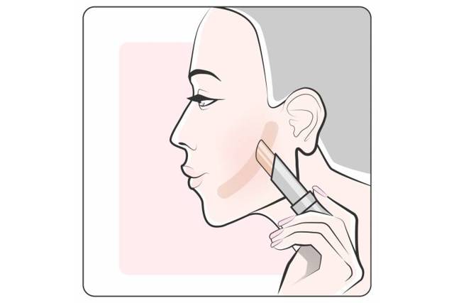 Для этого нанесите их не по центру «яблочек» щек, а на скулы, виски и кончик носа.