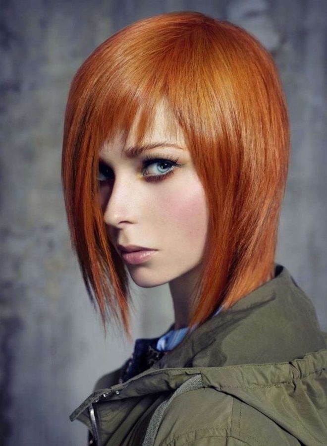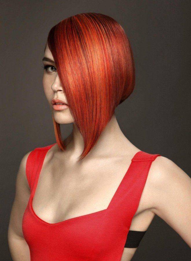 Стильные стрижки выше мочки уха удобны в носке и укладке, они эффектно смотрятся с яркими цветами прядей. Популярным трендом сезона является короткое каре, рыжие волосы в этой геометричной прическе с четкими линиями отлично подчеркивают глаза, делают черты лица изящнее и женственнее. Смелым женщинам, которые не боятся максимально оголить шею и обладают идеальной кожей, парикмахеры советуют такие стрижки: