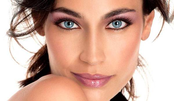 - Сочетание цветов в макияже для серых глазх и темных волос