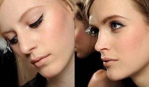 - Под бровями и на внутренние глазные уголки наносят светлые тона теней, граница перехода к основному темному тону обязательно размывается;
