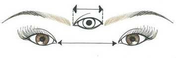 При нормальной посадке расстояние между глазами должно быть примерно равно длине глаза. И соответственно при других типах больше или меньше.