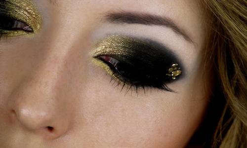 - Прежде чем красить глаза, приклейте накладные ресницы. Это придаст взгляду выразительность и глубину. На веки нанесите базу, не позволяющую теням скатываться или обсыпаться.