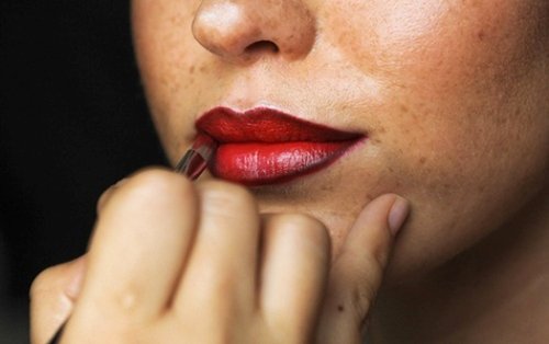 - выделение губ слишком темным или даже черным карандашом, неподходящим к цвету помады.