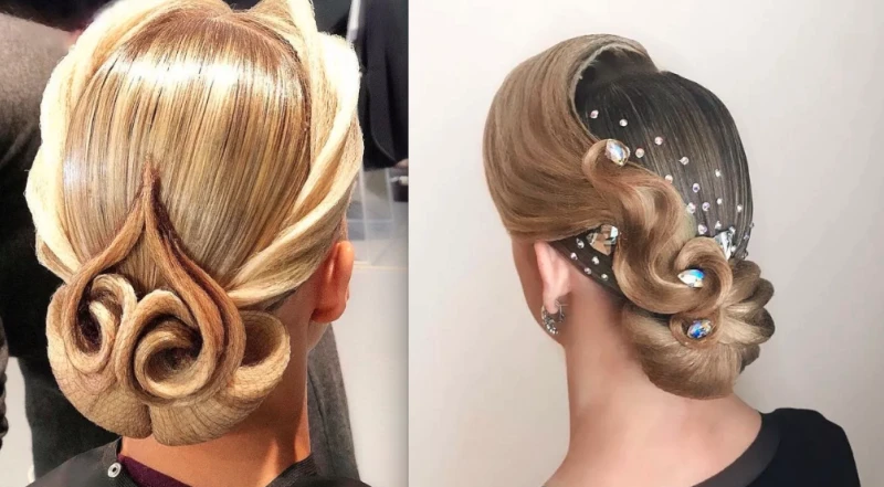 Важно, чтобы волосы не мешали ни вам, ни партнеру. Волосы буквально лакируют и склеивают в прическу. Лицо должно быть максимально открыто. В волосы можно вплетать цветы, камни, ленты