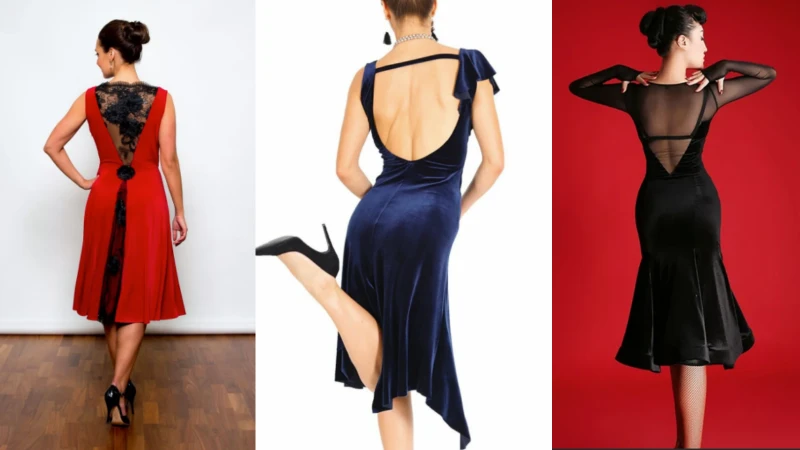 Аргентинское танго не входит конечно в программу бальных танцев PRO-AM, но уже сложилось, что соревнования по этому направлению всегда дополняют турниры по бальным танцам PRO-AM. Так как Аргентинское танго — социальный танец, то платья для этой программы больше походят на платья из реальной жизни. Хотя для турниров их украшают более серьезно. Акцент у партнерши идет на спину, потому как танго танцуют в закрытом объятии и переднюю часть платья особо не видно.