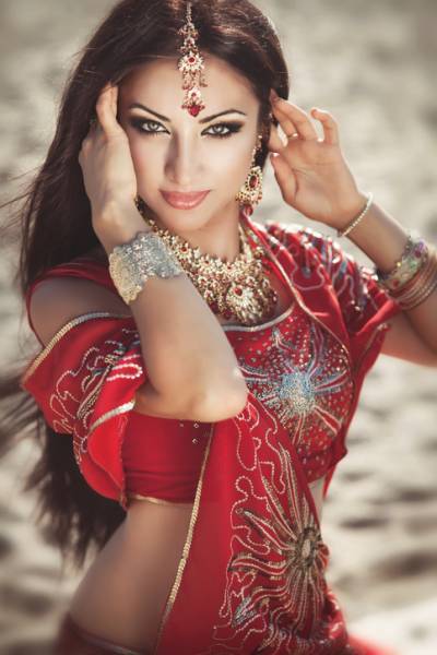 Здесь есть свои нюансы образа. Декольте, бедра, живот в таких танцах оказываются в центре внимания, так что косметику придется наносить еще и на тело. Подход может быть разным.