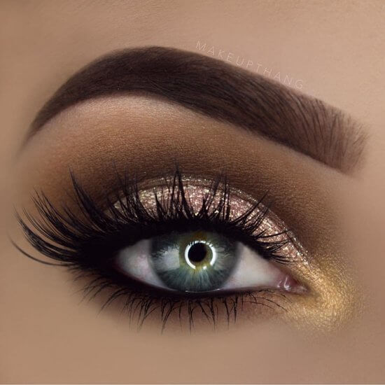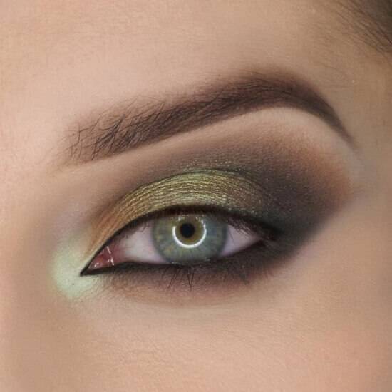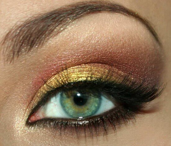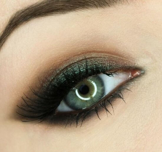 Не знаете, как сделать макияж для темно-зеленых глаз, чтоб подчеркнуть их холодный оттенок и глубину? Используйте золотые тени, окутайте свой взгляд золотой дымкой, и он заиграет ярче любых изумрудов.