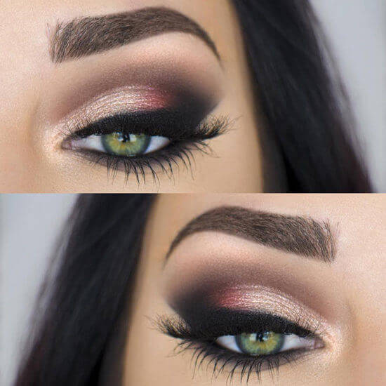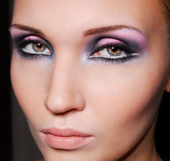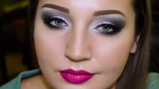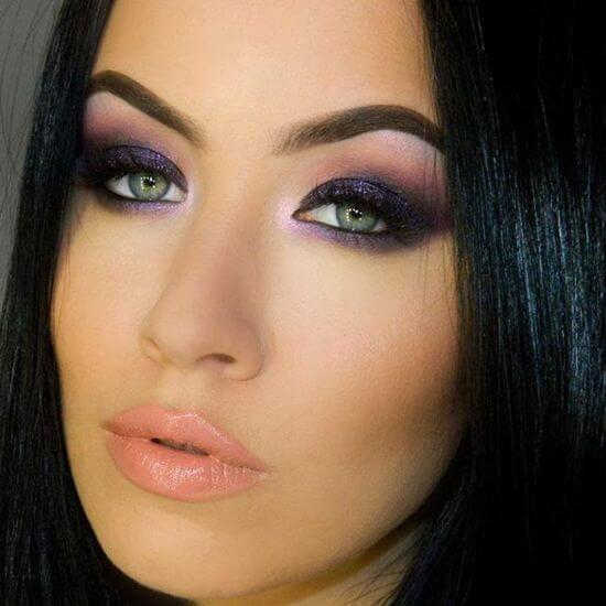 Собираясь на романтическое свидание, вечеринку, в клуб или на торжественное мероприятие, лучше добавить сочных красок в мейкап. Красивый макияж для зеленых глаз в ярких оттенках можно оформить, используя розовато-сиреневую гамму теней. Контрастные цвета добавят радужке насыщенности и подчеркнут ее, сделают взгляд более открытым и притягательным. Еще один удачный макияж для зеленых глаз вечернего формата – smoky eyes с сиянием и акцентом. Это простой визаж, который можно быстро выполнить самостоятельно, ниже представлена последовательность его нанесения.