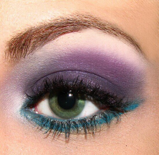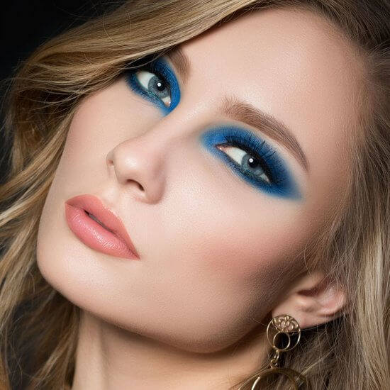 Синие тени на все веко могут оказаться полным провалом в вашем мейк апе. Если вы хотите использовать оттенки синего, можно подвести тонкую стрелочку бирюзовой подводкой или расставить легкие нюансы в виде бликов тенями
