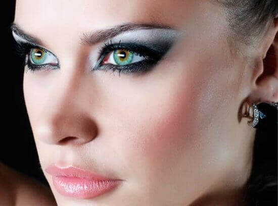 - Серо-зеленые. Этот оттенок радужки позволяет визажистам «играть» с внешностью, активизируя то серый, то зеленый «компонент» радужки. Если задача в активизации серого тона, используются графитовые тени, если нужно усилить зеленый цвет, в ход идут болотные и коричневые.