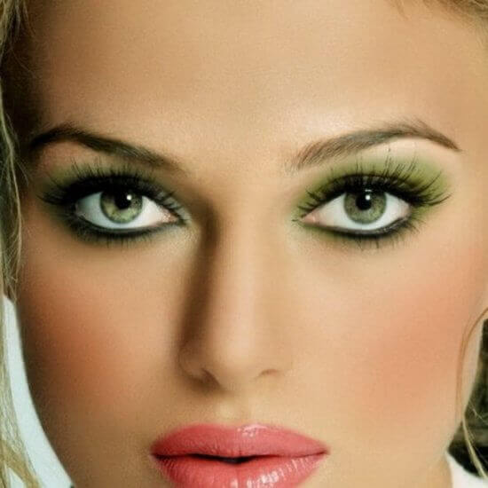 Рассмотрим особенности макияжа для зеленых глаз. Поэкспериментируйте с разными сочетаниями цветов. Ведь, как вы знаете зеленые глаза имеют много оттенков. Если ваши глаза с оттенком бирюзы, используйте оттенки теней темно зеленого или светло зеленого, чтобы глаза и веки не сливались в одно пятно.