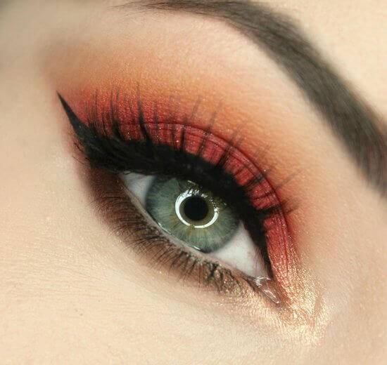 Пользуйтесь насыщенными красными оттенками для выделения глаз. Естественно не алыми или пунцовами, а гранатовыми или винными.