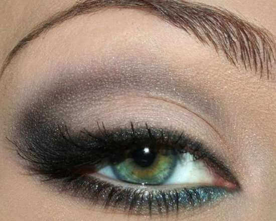 Предлагаемый вечерний мейкап подходит для большинства образов, он хорошо выглядит и с элегантным платьем, и со смелыми экстравагантными нарядами. Smoky eyes – универсальный макияж для зеленых глаз, фото подтверждают, что даже с опущенным веком этот визаж станет удачным выбором. Взгляд станет более глубоким и манящим, загадочным и сексуальным. Как красить зеленые глаза тенями и карандашом: