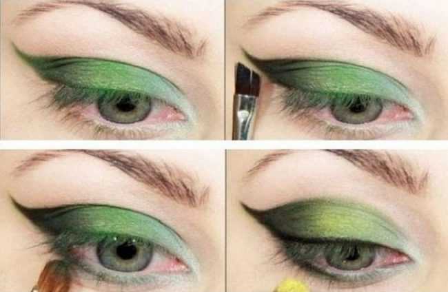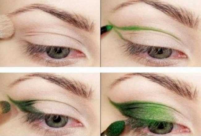 Яркий зеленый макияж. Шаг 1-4