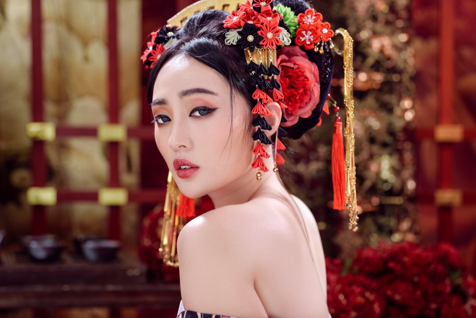 Чтобы соответствовать восточному образу, выровняйте волосы. Под такой стиль подходят локоны темно-каштанового или угольного цвета. В целом получается свежий, нежный и открытый образ. Классический японский макияж подойдет для каждодневного нанесения.