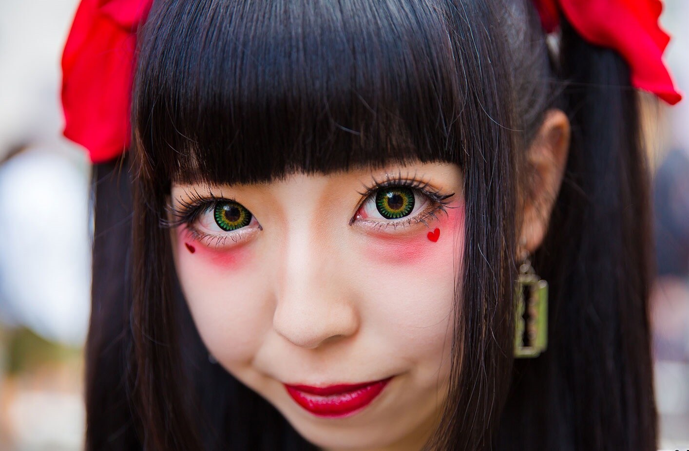 У японских девушек короткие ресницы и поэтому при нанесении макияжа они используют накладные. Для создания кукольного образа они наносятся на верхние и нижние ресницы.