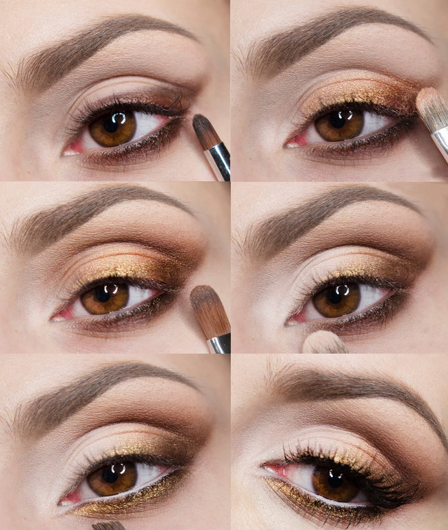 Важно, оживить взгляд белой линией по внутреннему краю глаза. Светлыми тенями под бровью, добавляя брови легкого перелива. Для макияжа нужно использовать хорошие средства декора