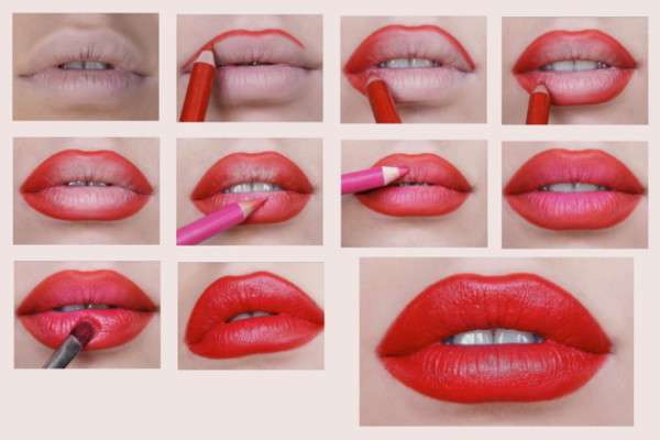 У каждой женщины есть своя техника нанесения помады. Кто-то использует карандаш перед тем, как красить губы помадой, чтобы она не вылезла за контур. Ниже вы найдёте еще несколько интересных вариантов того, как можно накрасить губы: