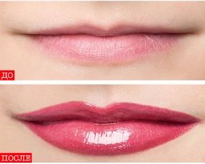 Больший объем дают помады с глянцевой структурой. При использовании матовой или сатиновой помады последним слоем наносят бесцветный блеск. В его составе должны быть только компоненты растительного происхождения.