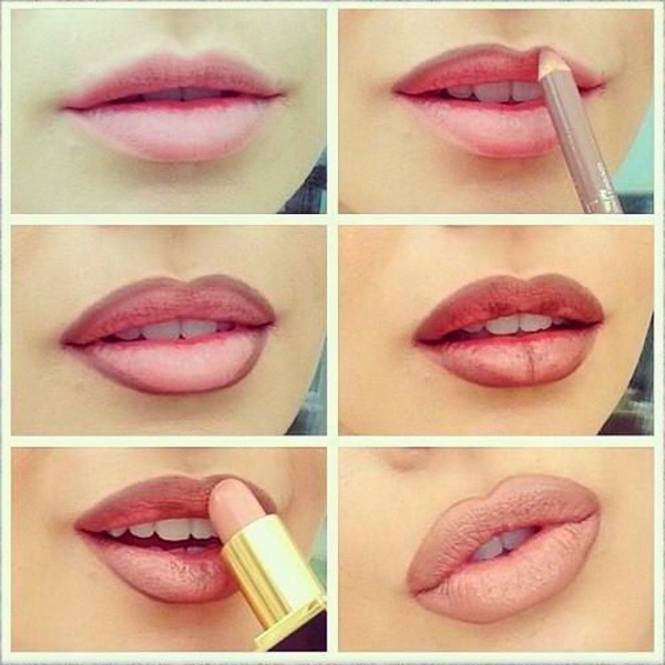 Невозможное возможно! Возможно применение светлых тонов на пухлых губах и темных на тонких без изменения их объема. Для этого нужно использовать особые техники градиентного макияжа, применяя 2 тона помады.