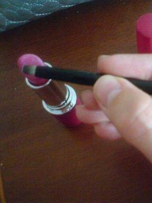 Повысить стойкость макияжа можно также, используя карандаш для губ в качестве подложки. Контур рисуют по схеме, которую мы приводили выше, а затем растушевывают линию внутрь, заполняя всю поверхность. Помада наноситься поверх полученного слоя. В этом случае нельзя использовать блеск, потому что цветовой пигмент может отслоиться и некрасиво собраться в складочках.