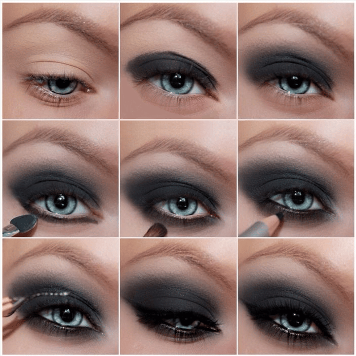 Также прекрасным выбором станет классический «smoky eyes» в черно-серых тонах, который будет смотреться просто потрясающе на брюнетках с голубыми или синими глазами.