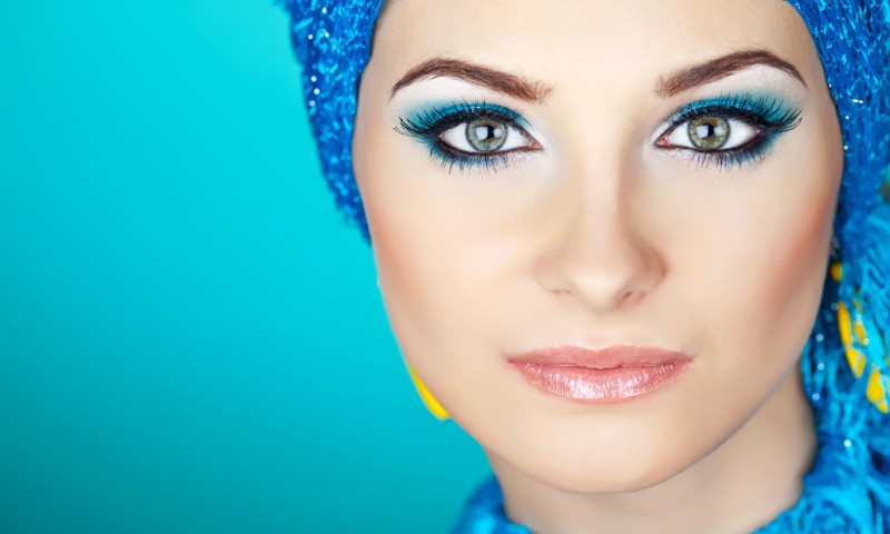 Но вот парадокс: сказанное выше не отрицает взаимное существование синего наряда с синими оттенками в мейкапе. Главный момент, который надо учесть, синего цвета на лице должно быть мало, доминировать должны переходные гаммы и более светлые оттенки: золотистые, рыжеватые, бежевые и даже белые.