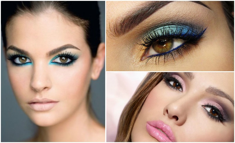 Такая же коричневая или серая база, а тени – голубые или темно-сиреневые, коричневые, серебристые. Исключите грязно-зеленый и красный цвет карандаша и теней. Отлично подойдет коричневая тушь.