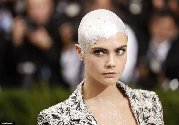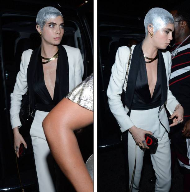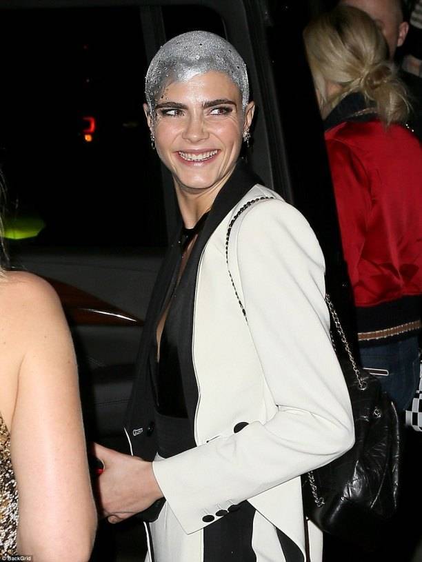 Кара продемонстрировала не просто бритую голову, но и выкрасила её в серебряный цвет.