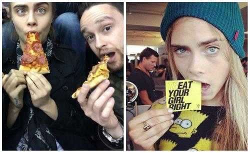 - Чтобы лицо оставалось свежим и проблемы кожи обошли вас стороной Кара рекомендует меньше перегружать лицо декоративной косметикой, а вечером не забывать про демакияж. Cara Delevingne редко посещает косметолога, но она регулярно пользуется уходовой косметикой, подобранной под ее тип кожи. Один из ее любимых продуктов- австралийская органическая мазь с экстрактом папайи. А еще красавица любит бекон, который по ее мнению улучшает цвет лица.