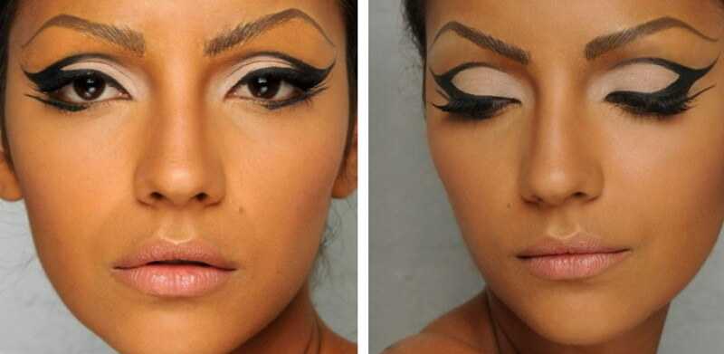 В египетском макияже акцент делают на глаза – зеркала женской души. Загадочный, глубокий и завораживающий взгляд получается за счет контрастов и использования пигментированных составов – черной туши и подводки (карандаша), насыщенных оттенков теней, подобранных в соответствии с естественным оттенком глаз. Чтобы создать соблазнительный «кошачий» разрез, необходимо учитывать ряд рекомендаций: