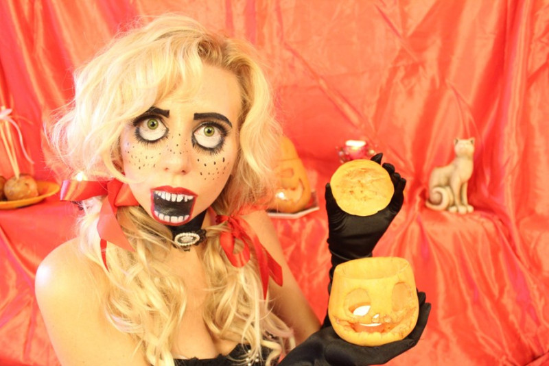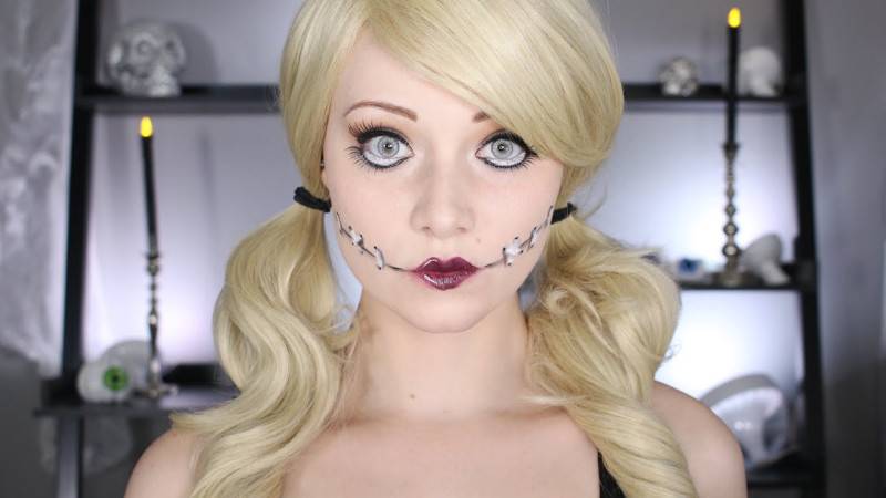 Идеальный кукольный макияж на Хэллоин для блондинки.
