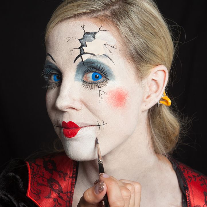 Порезы на лице сделают образ куклы на Хэллоуин максимально устрашающим.