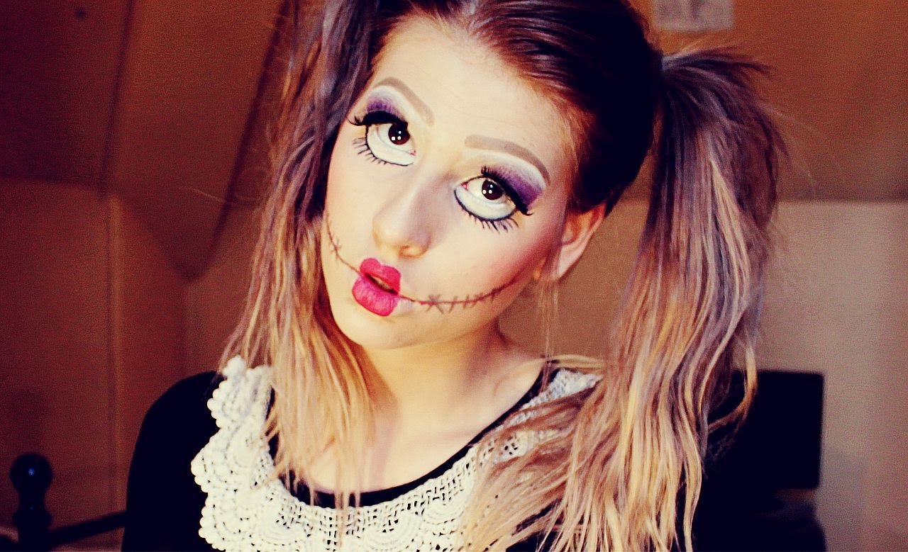 Идеальный кукольный макияж на Хэллоин для блондинки.