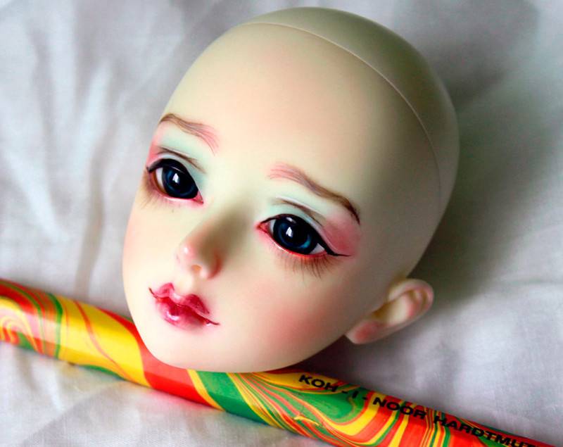 Рисовать кукольное лицо можно акриловыми красками, хотя, в некоторых местах разрешается наносить боевую раскраску масляными.