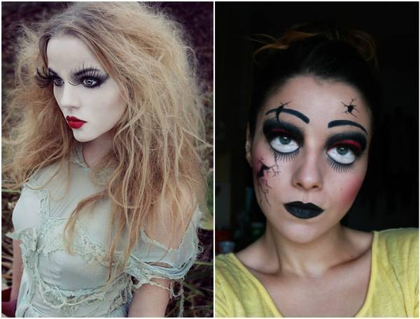 Румяна в этом макияже используются в соответствии с образом. Если это забавная кукла или фарфоровая красавица, то можно нанести на скулы светло розовый тон. Если выполняется макияж мертвой куклы на Хэллоуин, то розовые румяна будут неуместны. Можно использовать средство бронзового оттенка для создания эффекта впалых щек. Для этого нужно втянуть щеки и нанести румяна на образовавшиеся «впадины».