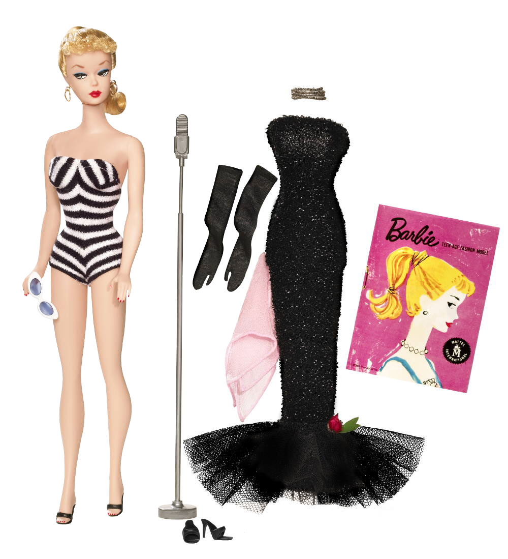 была впервые выпущена в США в далеком 1959 году. Кукольная индустрия в то время предлагала чаще всего образы младенцев, маленьких милых пупсов, которых нужно нянчить, играя в «дочки-матери». Барби стала прорывом. За основу был взят облик молодой (но взрослой) девушки с пикантной фигурой и броским макияжем – пышными ресницами, нежным румянцем и блестящими розовыми губами.