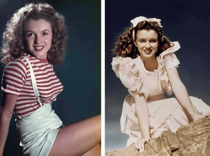 На фото Мэрилин Монро в молодости и после смены имиджа