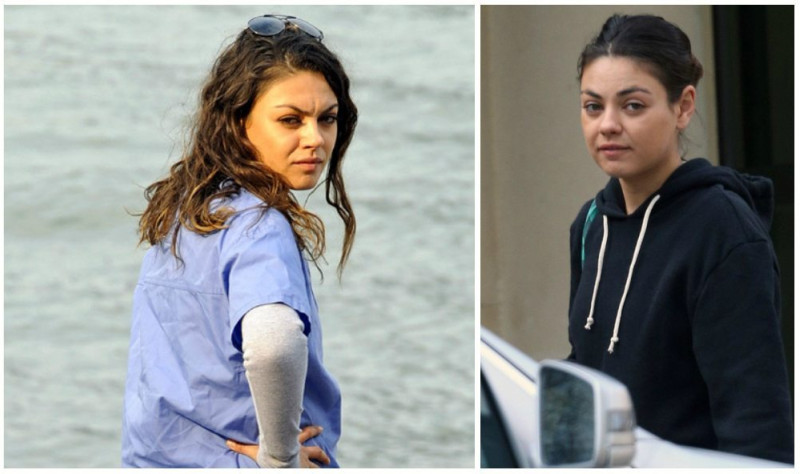 То ли актриса попадается на глаза папарацци по утрам после веселых вечеринок, то ли действительно чудодейственный, но на всех снимках девушка выглядит словно она только проснулась, причем лицо лежало на подушке не очень удобно. Все мы по утрам выглядим немного иначе, да и история помнит “безмакияжные разоблачения” погромче, потому сказать, что настоящее лицо Милы шокирует или удивляет нельзя. Но то, что декоративная косметика меняет внешность в корне в случае Милы- как аксиома.