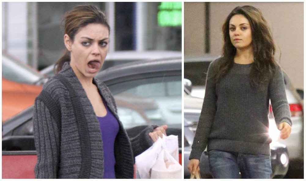 То ли актриса попадается на глаза папарацци по утрам после веселых вечеринок, то ли действительно чудодейственный, но на всех снимках девушка выглядит словно она только проснулась, причем лицо лежало на подушке не очень удобно. Все мы по утрам выглядим немного иначе, да и история помнит “безмакияжные разоблачения” погромче, потому сказать, что настоящее лицо Милы шокирует или удивляет нельзя. Но то, что декоративная косметика меняет внешность в корне в случае Милы- как аксиома.
