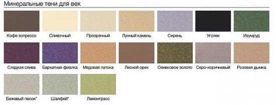 - Тени для век – серые, голубой металлик, оливковый и зеленый (но только